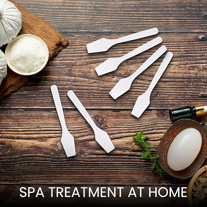 - Hygienically test, mix or apply make-up or skin care products with this disposable plastic white spatula