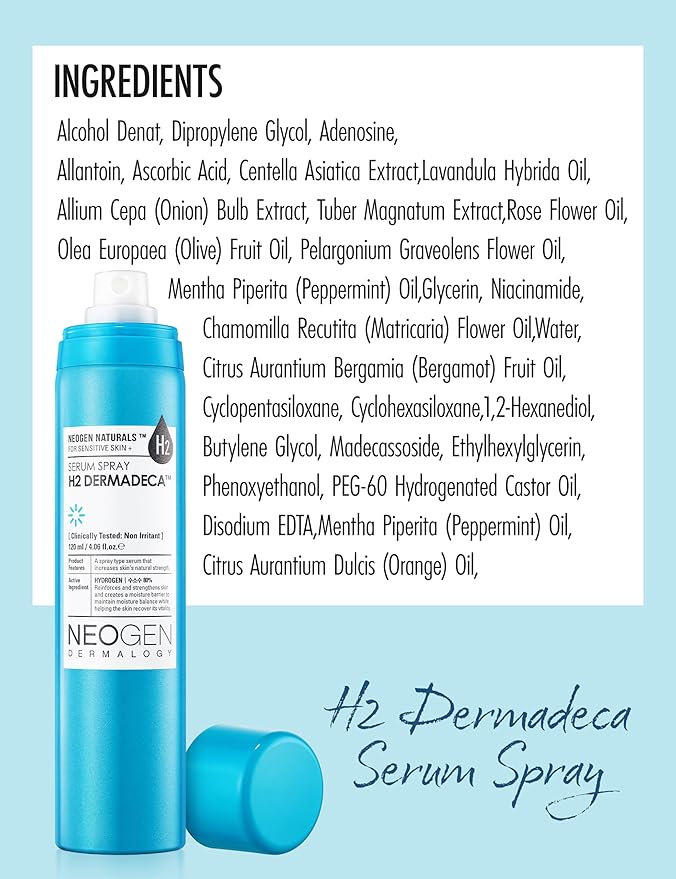 [K-Beauty] Neogen H2 Dermadeca Serum Facial Spray | 80% Hydrogen-Water Face Mist Hydrating Serum w/Niacinamide Vitamin C & Centella 4.06 fl oz