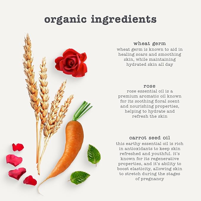 - Organically crafted - our organic belly oil for pregnancy features oil blends of sunflower, carrot seed, and wheat germ, plus an aromatic blend of herbs and florals