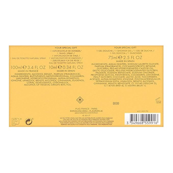 1 Million by Paco Rabanne Eau de Toilette Spray 100ml, Shower Gel 75ml & Eau de Toilette Spray 10ml