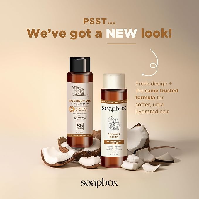 Soapbox Shampoo and Conditioner Set with Coconut Oil, Jojoba Oil, Aloe and Shea Butter to Moisturize and Nourish for All Hair Types, 16 Ounces Each (Pack of 2)