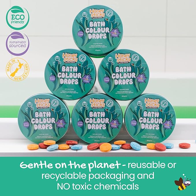 - PERFECT GIFT - Honeysticks Bath Color Drops come beautifully packaged in a reusable and recyclable tin making them an ideal gift for toddlers and boys and girls of all ages!