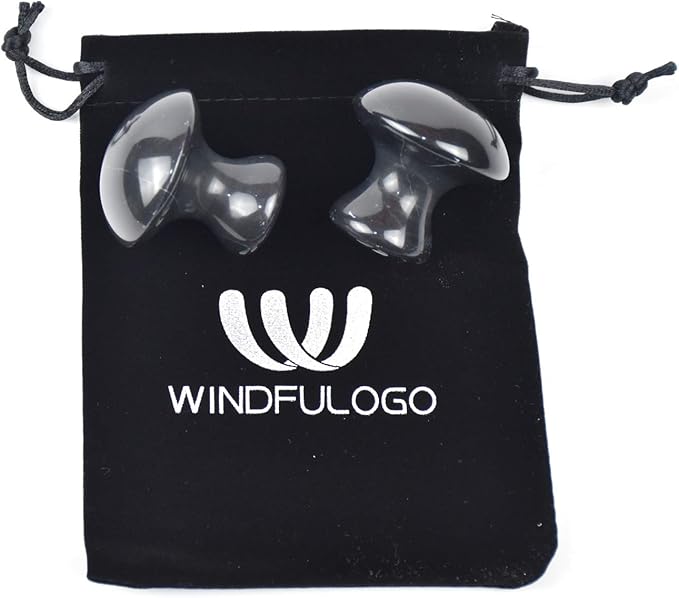 2 Pcs Mushroom Shaped Massage Stones Natural Bian Stone Hot Rock for Spa Massage (2-S, Black)