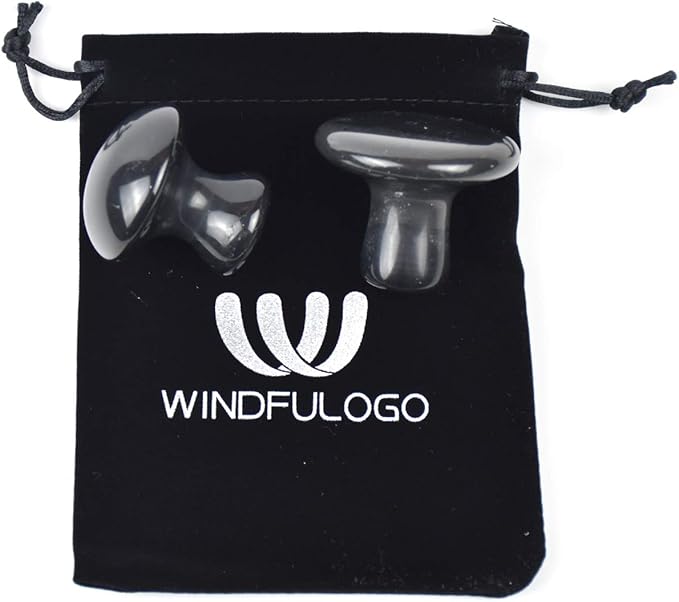 2 Pcs Mushroom Shaped Massage Stones Natural Bian Stone Hot Rock for Spa Massage (2-SL, Black)