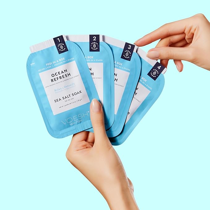 - Great for Salon or At-Home Pedicures. VOESH Pedi in a Box 4 Step Ocean Refresh gives you everything you need for a perfect pedicure, either at home or at the salon! Get a relaxing experience anywhere with this spa pedicure kit.