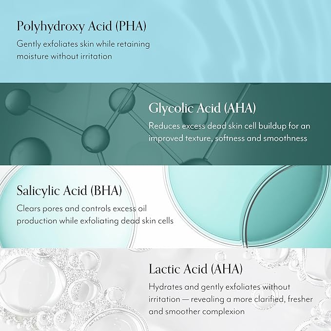 - GENTLE AND EFFECTIVE INGREDIENTS: This gentle peel features a triple-action blend of AHA, BHA salicylic acid and PHA to cleanse and clarify pores without stripping away moisture.