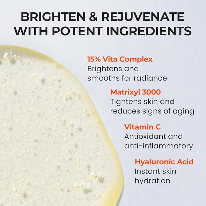 - 15% Vita Energy Complex: Formulated with a 15-vitamin blend, Hydrolyzed Collagen, and MATRIXYL 3000, these ingredients restore essential moisture to your skin and improve its firmness.