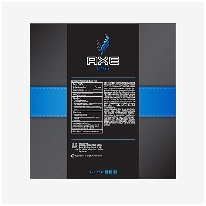 - AXE Gift pack includes one 4 oz AXE Phoenix deodorant Body Spray, one 2.7 oz Phoenix antiperspirant and Deodorant Stick and one 16 oz AXE Phoenix Body wash for men.