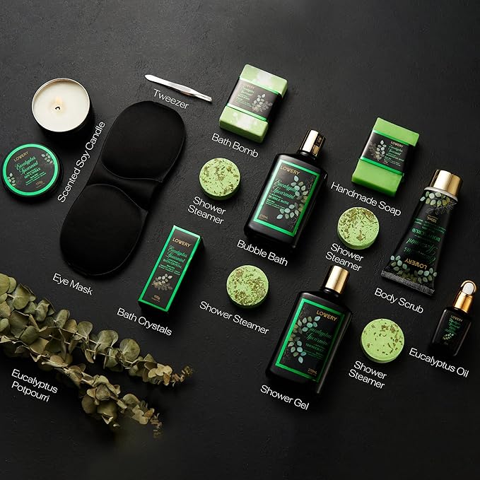• HOME SPA SESSION - Lovery Eucalyptus Spearmint Bath Set is specially formulated to indulge your Mind, Soul and Body. It contains a combination of Mint Fragrance, all-natural ingredients and Essential Oils. These beauty products are made with Peppermint Oil, Argan Oil, Vitamin E, Tea Tree Oil, Eucalyptus Oil and Shea Butter.