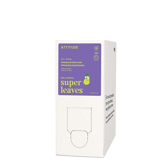 ATTITUDE Shampoo and Body Wash for Kids, EWG Verified Hair and Body Cleanser, Dermatologically Tested Soap, Plant and Mineral Based Bath Products, Vegan, Bulk Refill, Vanilla and Pear, 67.6 Fl Oz