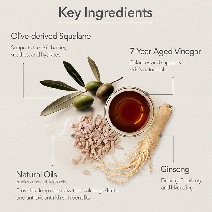 - POWERED BY FERMENTATION : Formulated with VIN-H7, a proprietary ingredient derived from 7-year-aged ginkgo vinegar, packed with probiotics, amino acids, and essential nutrients to help hydrate and balance the skin. Infused with VinB10-Biotic Ginseng, fermented with black vinegar, to support and soothe the skin.