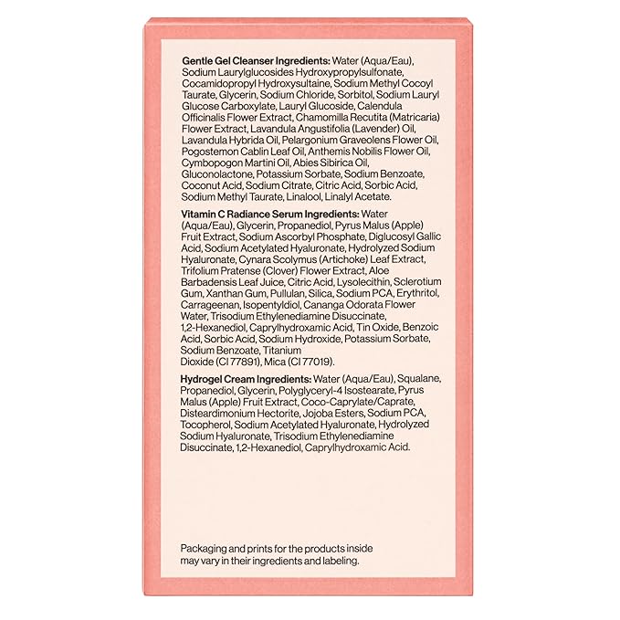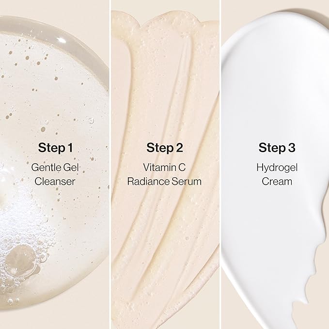 • TRAVEL SIZE: The perfect travel size regimen for achieving clean, hydrated, dewy looking skin on the daily. Works for all skin types and includes Hydrogel Cream (0.57 fl oz), Gentle Gel Cleanser (1.5 fl oz), and Vitamin C Radiance Serum (0.33 fl oz)