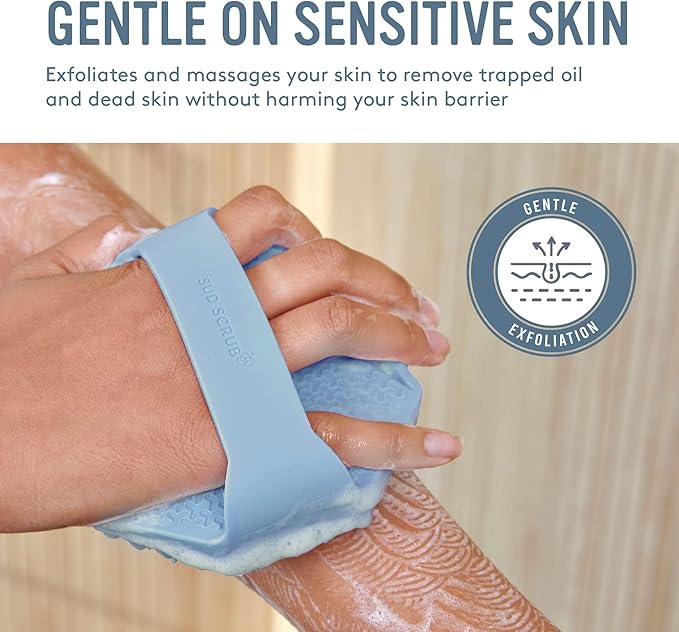 Sud Scrub® Antimicrobial Silicone Body Scrubber, Exfoliating Body Scrubber for Sensitive Skin, Eco Friendly Shower Scrubber for Body, Silicone Body Brush for Showering, Blue