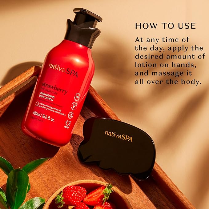 - Antioxidant Power: Nativa Spa Ruby Strawberry Antioxidant Body Lotion harnesses the antioxidant power of strawberry extracts. Rich in vitamin C and antioxidants, strawberries help protect your skin from free radicals, promoting a healthy and rejuvenated appearance.