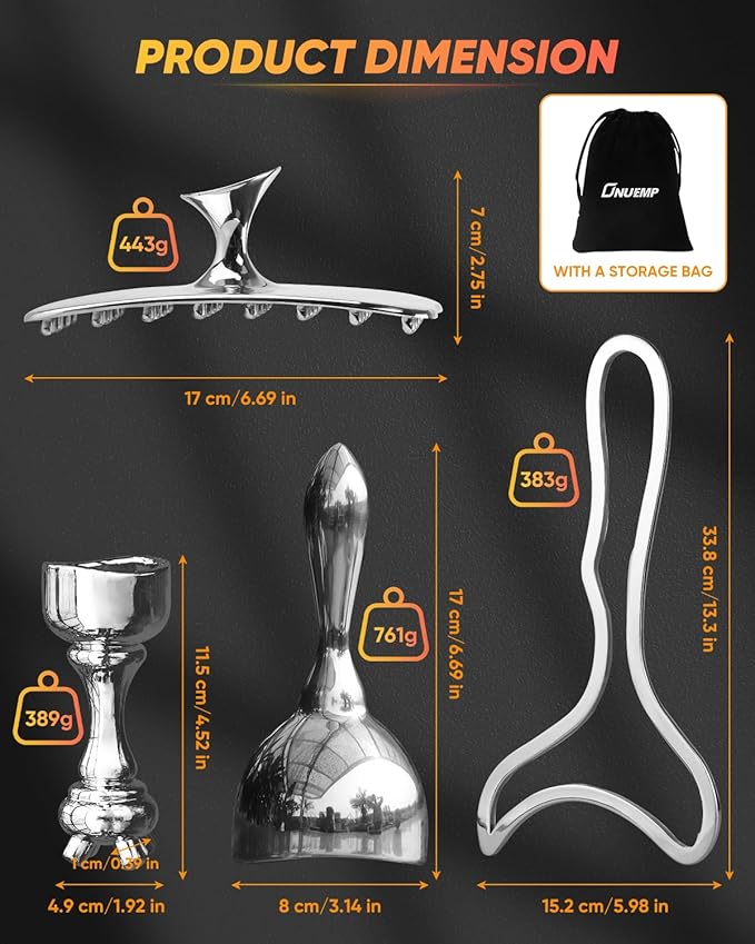 - MEDICAL GRADE QUALITY: Crafted with premium medical-grade stainless steel, polished to a mirror-like finish. Easy to clean. Perfect for all skin types, even for sensitive skin. Pair the tools with massage oil or cream for easy gliding