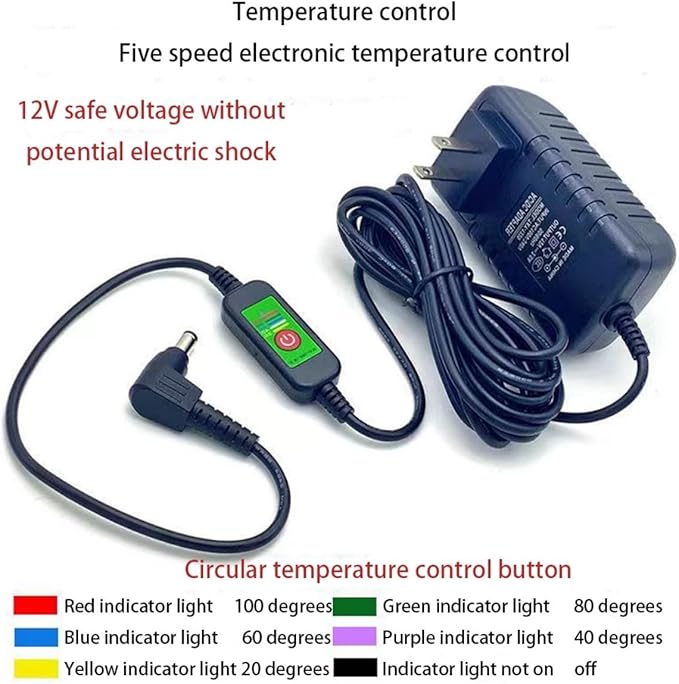 - 【Adjustable Temperature】Power on for 5 minutes to preheat. After the adapter is plugged in, the indicator light on the adapter will light up, The bian stone will start to heat up in about 5 minutes, and the Bianstone will become very hot in about 10-15 minutes. At this time, you need to use a temperature controller to adjust the temperature suitable for your use. 🍀( Color temperature control: yellow 20 degrees, white40 degrees, blue 60 degrees, green 80 degrees, red 100 degrees.)