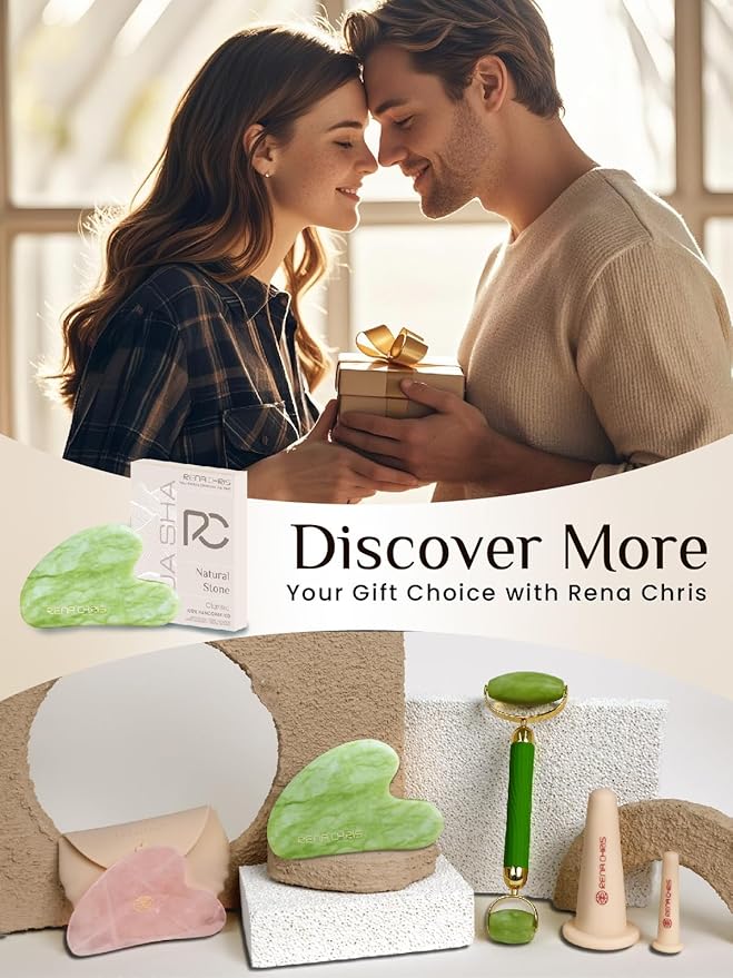 - NATURAL MATERIALS:Rena Chris metal gua sha tools are crafted from 100% premium Xiuyan Jade. The guasha stone is celebrated for promoting tranquility, balancing emotions, and enhancing well-being, making it an ideal choice for your self-care rituals