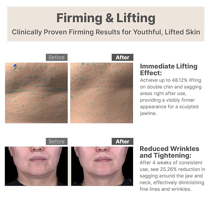 - ✨ Firming & Lifting Cream for Neck & Décolleté: Specially formulated to target sagging skin, our cream is effective on the neck, décolleté, and key points such as under the chin, behind the ears, temples, and lymph nodes. Designed to tighten and lift, it visibly reduces the appearance of wrinkles, ensuring a smooth, firm complexion that boosts your confidence.