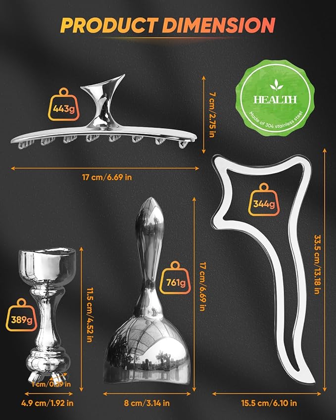 - MEDICAL GRADE QUALITY: Crafted with premium medical-grade stainless steel, polished to a mirror-like finish. Easy to clean. Perfect for all skin types, even for sensitive skin. Pair the tools with massage oil or cream for easy gliding