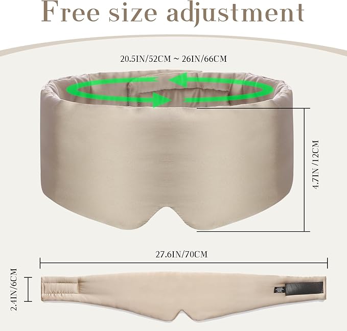 100% Mulberry Silk Sleep Mask Eye Mask for Women Man with Adjustable Band, for Side Sleeper Blackout Sleep Mask for Travel Rest and Office Large Size (Taupe)