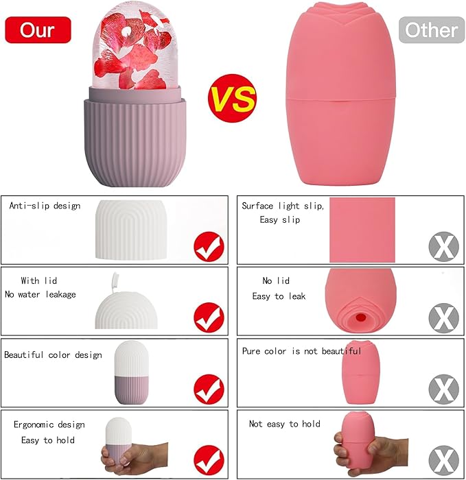 - โ๏ธ HIGH-QUALITY: This ice roller for face is made of high-quality silicone material, which is repeatable and durable. Small and light design, ergonomic hand design is easy to grasp, ice roller head can slide on the skin,It is also easy to carry.