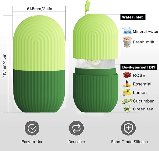 - โ SAVE MONEY AND VERSATILE: Refillable for a fresh and clean cube each use. Freeze alternate cube recipes๏ผsuch as lemonade for whitening, green tea for inflammation, cucumber water for reducing swelling, Mint leaves refreshing and coconut for improving skin Milk.