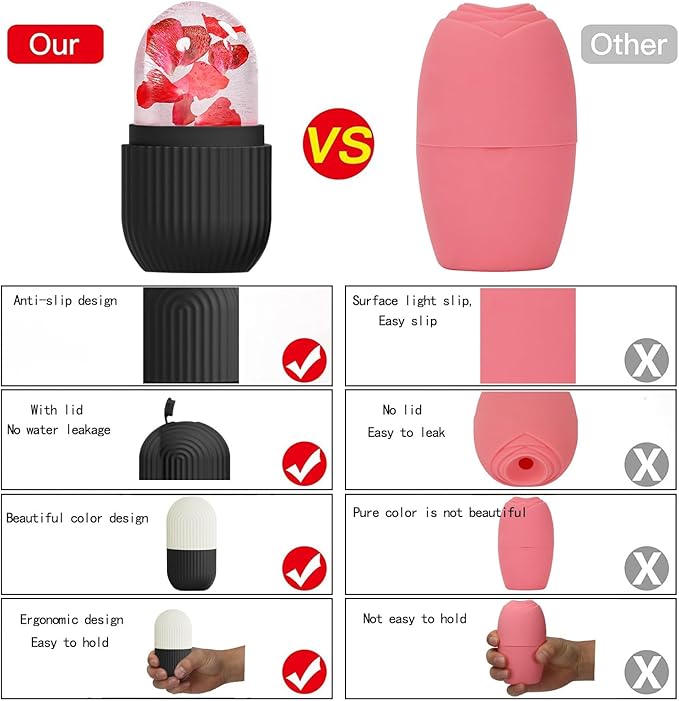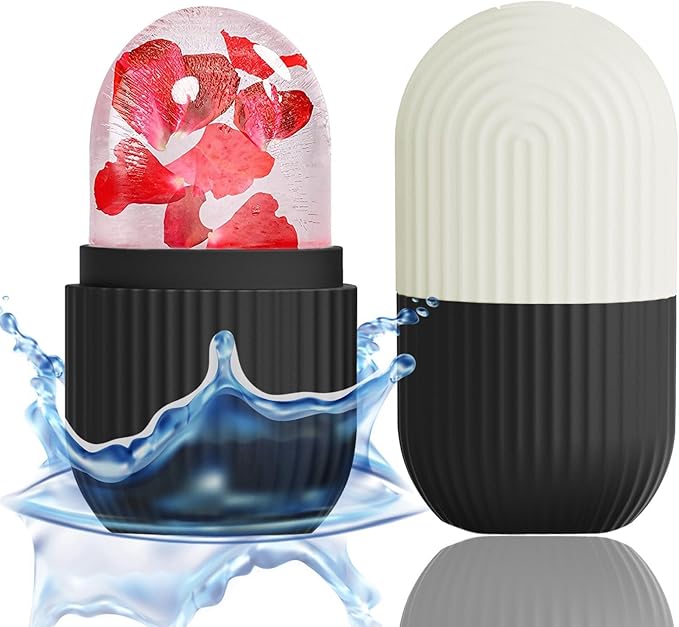 XHJRI Face Roller Massager for Skin Care, Reusable Ice Mold Massage Roller - Cordless, Battery Powered, Black White, Migraine Relief, Rolling Therapy for Whole Body