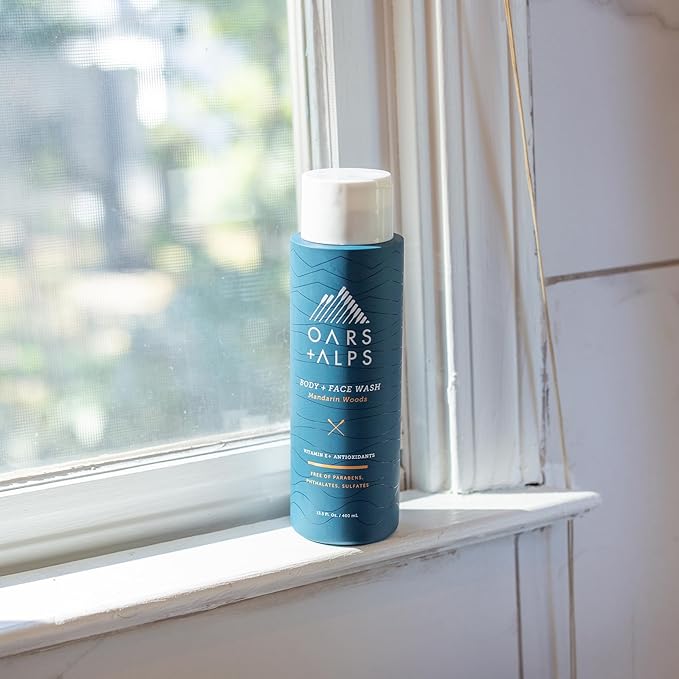Oars + Alps Mens Moisturizing Body and Face Wash, Skin Care Infused with Vitamin E and Antioxidants, Sulfate Free, Mandarin Woods, 13.5oz, 2 Pack