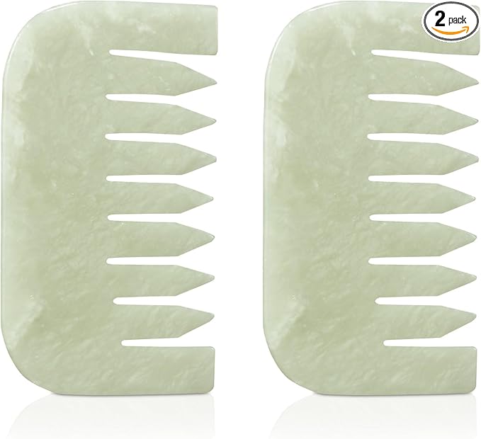 - What you get: package comes with 2 pieces jade stone combs, one of combs is a jade massage comb, the other is a beeswax material. (We are natural jade stone, the color and texture of each color is a little different, please confirm before buying