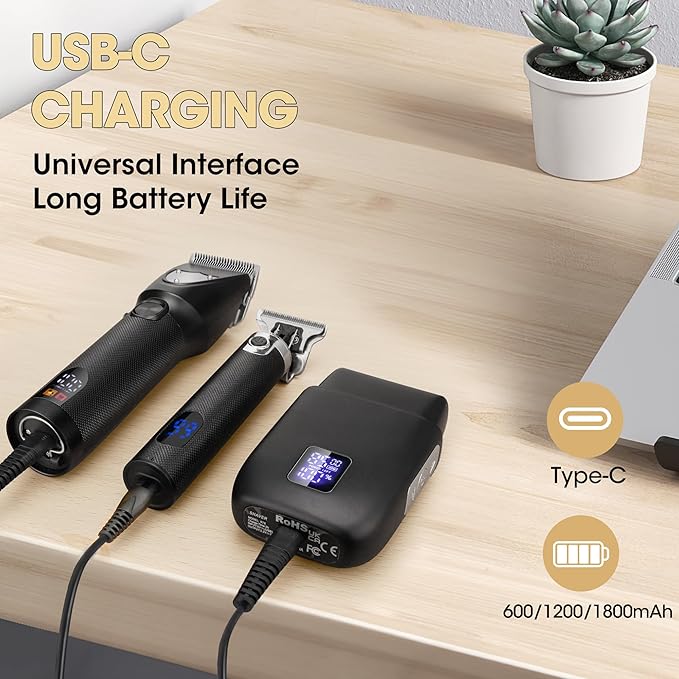 - Long-lasting Battery Life: Equipped with a high-capacity battery, our hair clippers ensure long hours of uninterrupted use. Perfect for travel or busy lifestyles.The digital display allows you to easily monitor the battery level and select the desired cutting length, making your grooming routine a breeze.