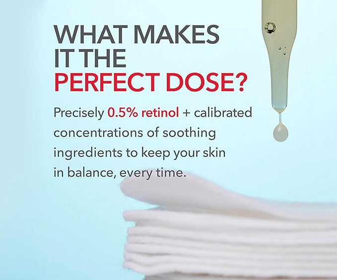 • This dermatologist-formulated, pre-dosed extra strength treatment with our highest concentration of 0.5% pure liquid retinol to target stubborn fine lines, wrinkles, uneven tone, texture, and congested skin in one simple, easy to use treatment pad.