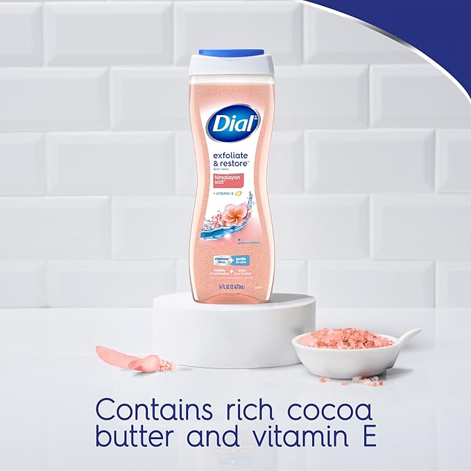 - CLEANSES DEEP: Smooth your skin with this Exfoliating Body Wash. This Dial Body Wash is tough on dirt and impurities yet gentle, and is for all skin types. 16 Fl Oz bottle (Pack of 4) in refreshing Himalayan Salt scent.