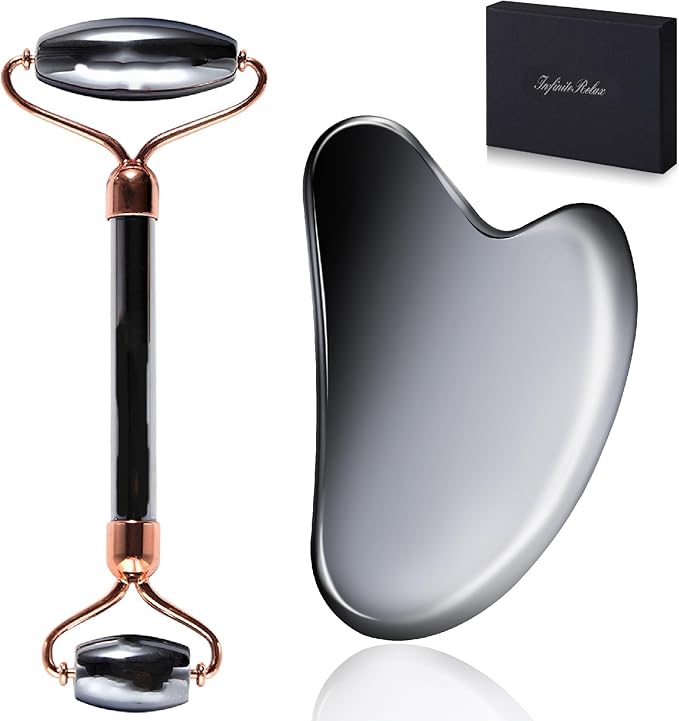 Terahertz Gua Sha & Roller Facial Tools, Face Roller and Gua Sha Set, Guasha Massager Tool for Face-Reduce Puffiness and Improve Wrinkles Idea for Mom Women