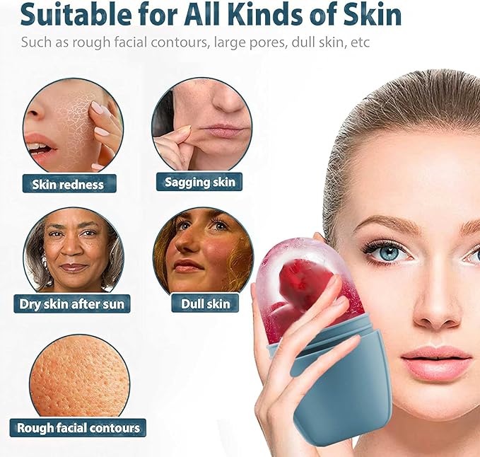 KOGITI Face Ice Roller & Mold - Beauty Facial Massage Tool for Puffiness Relief, Ice Cube Holder (Brush-Blue)