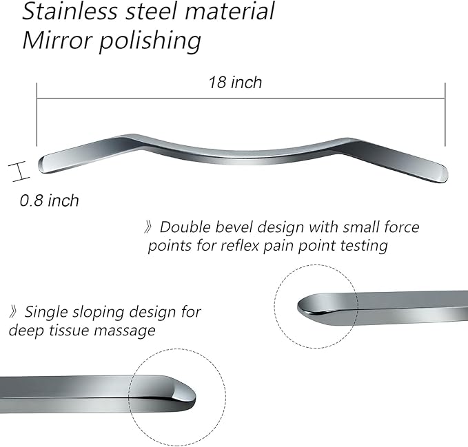 - ♕This Stainless Steel Muscle Scraper Tool can help relieve muscle pain, Soreness and tension, break soft tissue adhesion and fascia limitation, Promote blood circulation,Stimulate regional red blood cell renewal,And enhance skin elasticity and tightness by applying pressure on parts, Scraping muscles and scraping massage