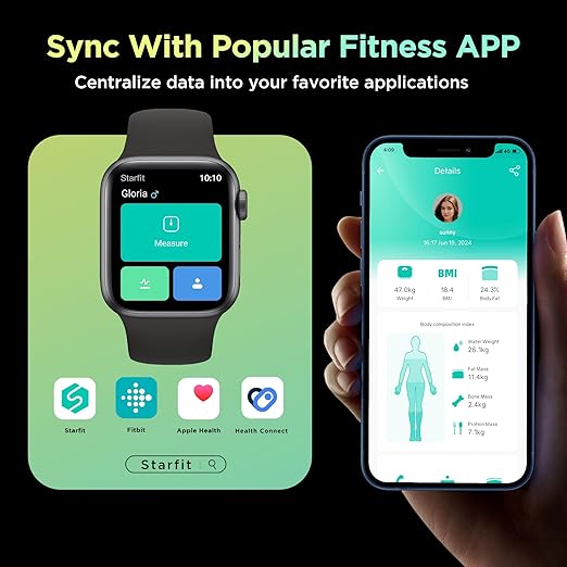 - FSA / HSA ELIGIBLE. Starfit APP syncs with Popular Fitness Apps: Apple Health, F1tbit, Health Connect. Compatible with Fitdays (allows sync with Samsung Health)