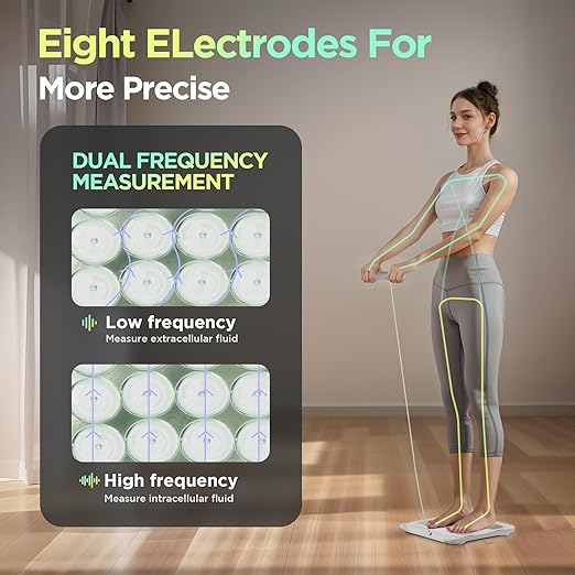 - ULTRA-ACCURATE BODY ANALYZER: Runstar bathroom scale FG2202LB has a total of 8 electrodes and uses dual-frequency AC BIA segmentation measurement technology to analyze the limbs and torso independently and separately to obtain true body composition data, which is more realistic and accurate than a four-electrode scale