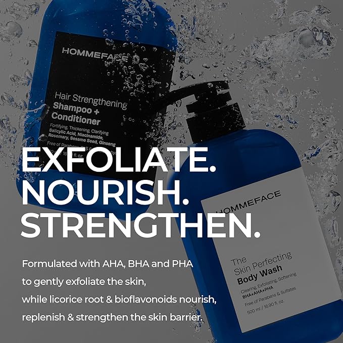 HommeFace Men’s The Skin Perfecting Body Wash with Pump, 16.9 Fl. Oz. - Korean Skincare Technology for Body Acne with BHA, AHA, PHA