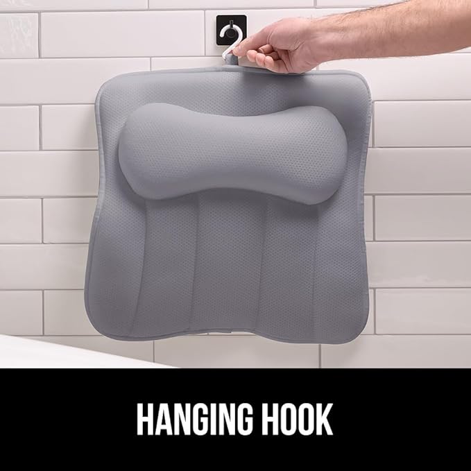 GORILLA GRIP Mesh Bath Pillow for Tub, 6 Powerful Suction Cups, Oversized Headrest with Breathable FlexComfort Technology for Neck, Head, Back Support, Luxury Machine Washable Bathtub Must Haves, Gray