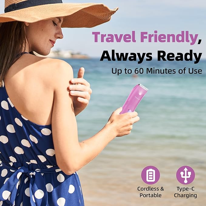 - Waterproof, Quiet & Travel-Friendly - The VIKICON pubic hair trimmer for women is 100% waterproof, making it perfect for use in the shower. Its low-noise motor ensures a discreet and relaxing grooming experience. Plus, the women's razor compact design fits easily into your travel bag, and with USB-C charging, you’re always ready for a touch-up, whether at home or on the go.