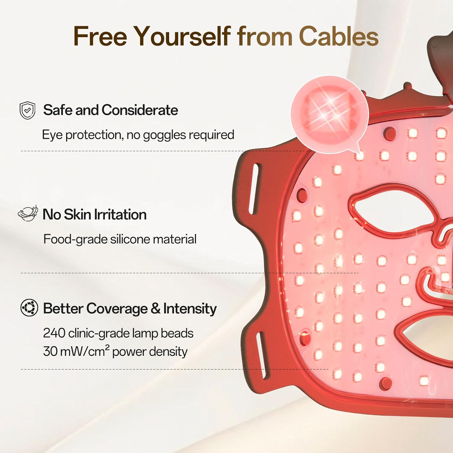 - 7-Color Light: Transform your skincare routine with our advanced red light mask featuring 240 strategically placed lamp beads for even coverage. With seven wavelengths—red, blue, green, yellow, purple, cyan, and white—target specific skin concerns and customize your treatment.