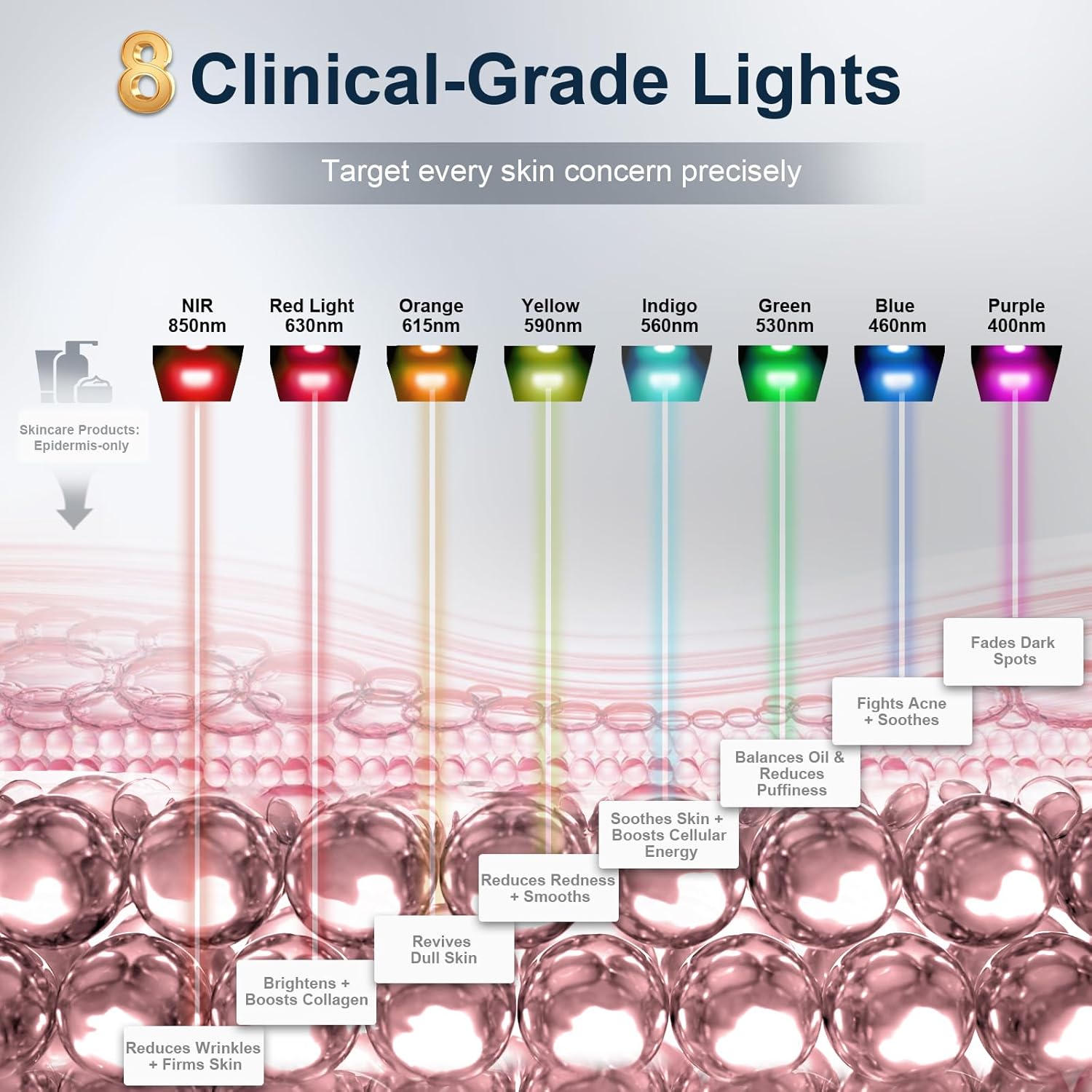 - [8-Color Light Therapy Mask for Brighter, Clearer Skin] CONLWIN's red light therapy mask combines collagen-boosting Red (630nm), wrinkle-smoothing NIR (850nm), and acne-fighting Blue (460nm) with complementary 400-615nm waves to fade spots, even tone, and calm redness; narrow-spectrum tech delivers high-concentration energy waves deep into skin—visibly targets dullness, pores, sensitivity, and 10+ skin concerns for all types