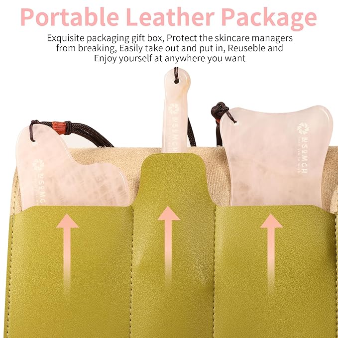 - MEANINGFUL GIFT: Massage tools come with an elegant green bag. You could convey your heartfelt wishing by sending jade gua sha as a gift to your family and friends on birthdays, holidays, and anniversaries.