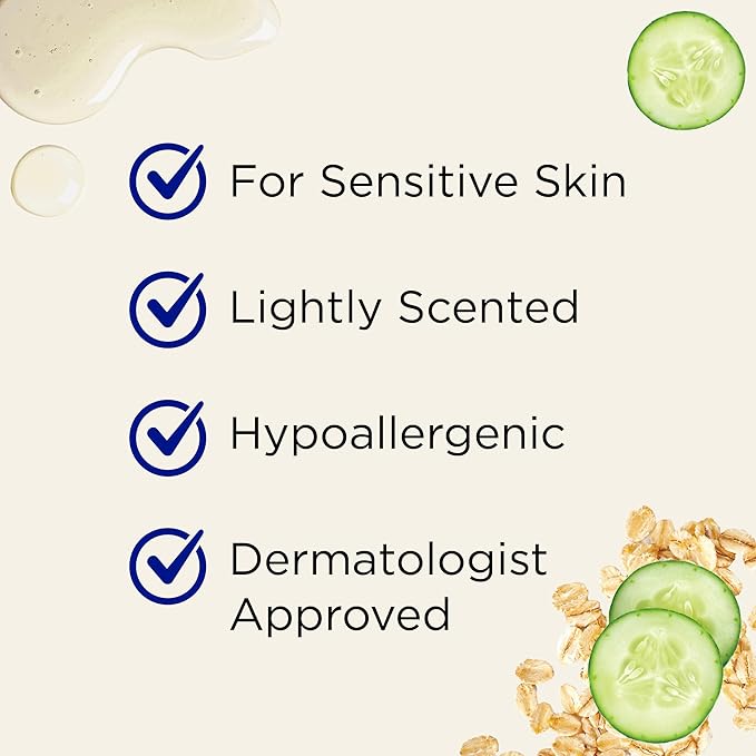- COLLOIDAL OATMEAL & CUCUMBER EXTRACT: Specially formulated hypoallergenic formula to help soothe sensitive skin