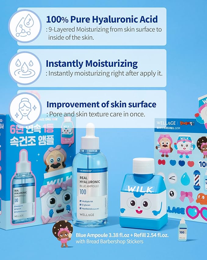 - HYALURONIC CHARACTER HERO — Special Bread Barbershop edition! This character collaboration with 100% pure hyaluronic acid delivers intense moisture. Watch skin become plump and youthful—fun meets function!