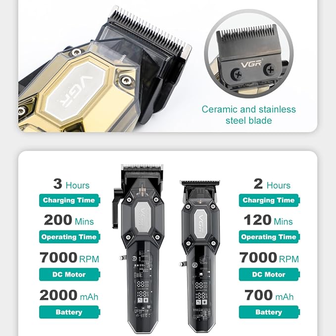 - Complete Clipper & Trimmer Set for Professional and Home Use: The VGR 600&900 barber clippers set includes a powerful hair clipper and a precision trimmer, designed for barbers, hairstylists, and home users. Whether you need a full haircut, precise edging, or detailed beard trimming, this cordless clippers set ensures a smooth, sharp, and professional result every time