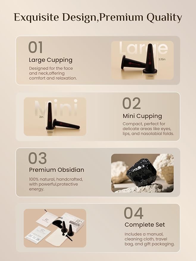 - WHAT YOU GET: Facial cupping therapy set *1, rose quartz gua sha board *1, instructions for use *1, cleaning cloth *1, portable travel bag *1, exquisite packaging*1