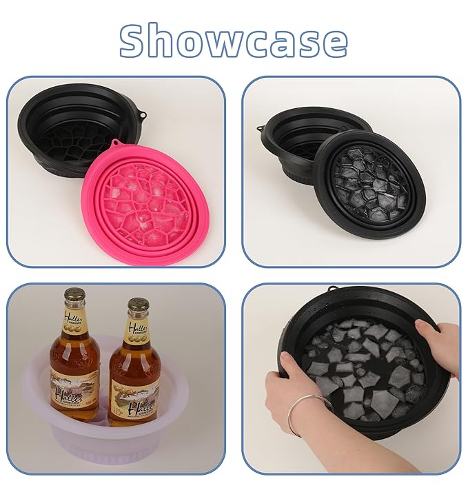 - ❄️Space Saving: Designed for modern lifestyles, this ice cube basin features a non-slip base that holds the bowl securely in place during use or folds down to just 1.18 inches thick for easy storage in a drawer or travel bag. It stays stable even on wet bathroom countertops.