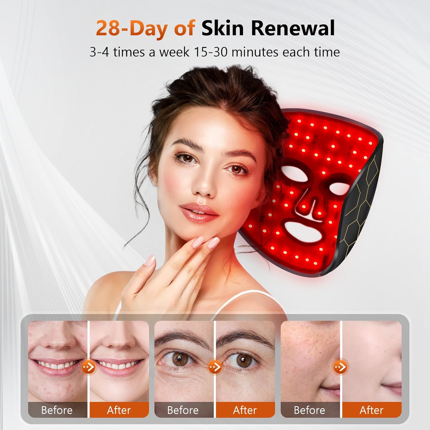 - 🔥【Automatic Timing Function】 Red light therapy mask for face is recommended to be used 3-5 times a week to get the best results. With automatic timing function,setting 15-20 minutes each time, which can keep the skin tighter at a deeper level stable and improve your skin problems (due to skin differences, the effective time is different, please keep using it).