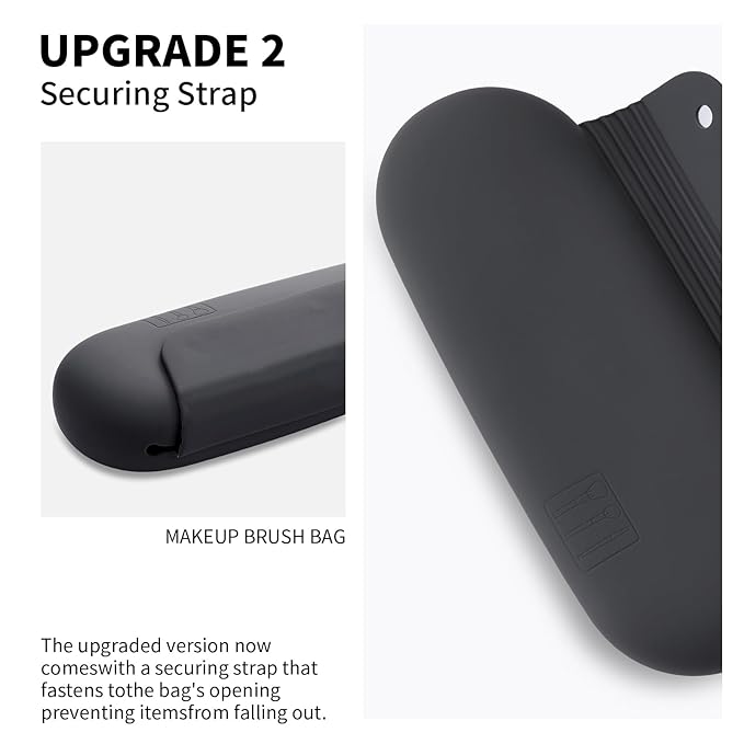 Silicone Makeup Brush Holder Travel Cosmetic Bag:Soft Portable Cosmetic Face Brushes Holder with Upgrade Anti-Fall Out Magnetic Closure, Large Travel Makeup Brush Case - Grey